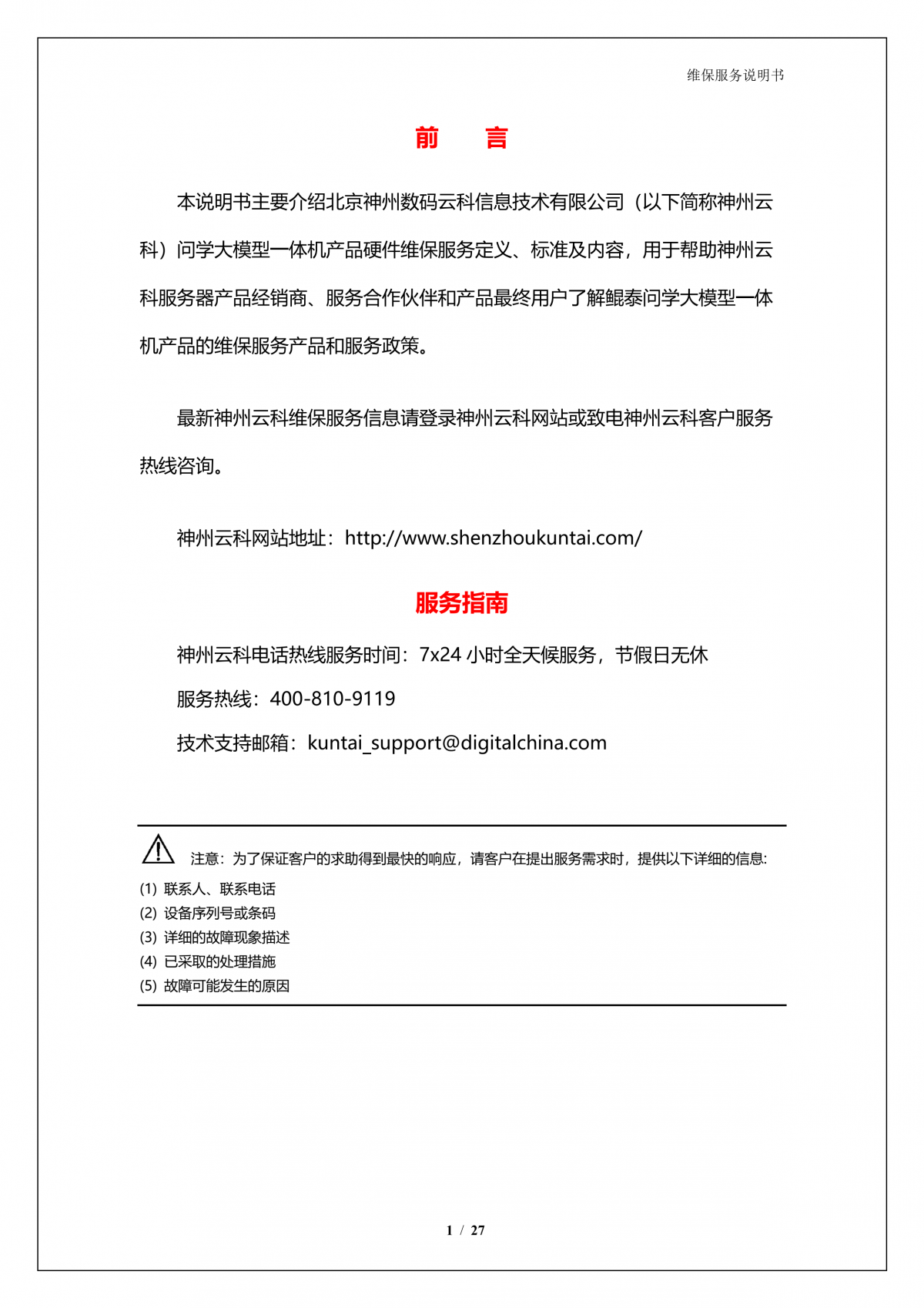 dcbox小金库appA924 问学大模型一体机维保服务说明书_V1.0