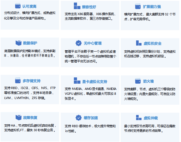 Ø多年虚拟化性能优化积累 ,CPU 独占 、多核优化 、磁盘缓存加速 、显卡场景快速切换;